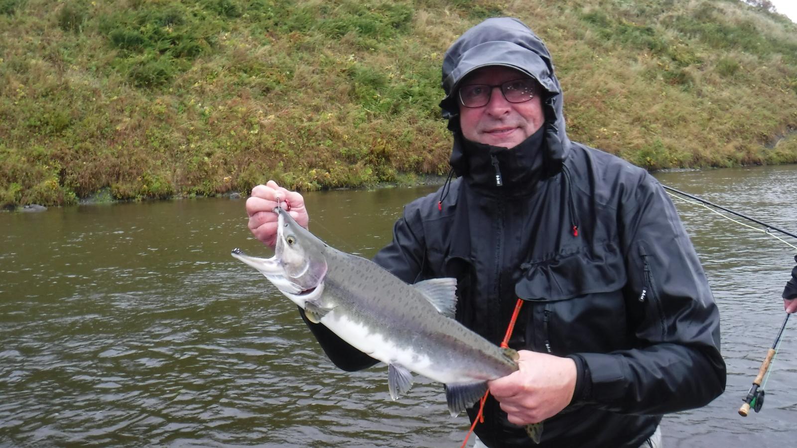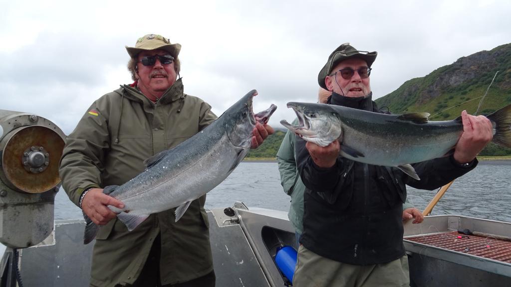 Egon Kellermann und Harold Herdman, Silberlachs mit Blinker und Naturköder beim Downrigger Schleppen, 80 cm, Arm of Ugak Bay, KodiakAlaska, September 2019